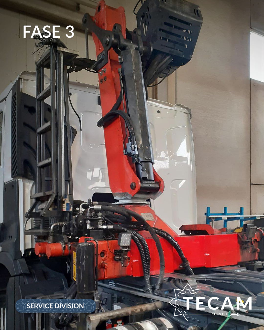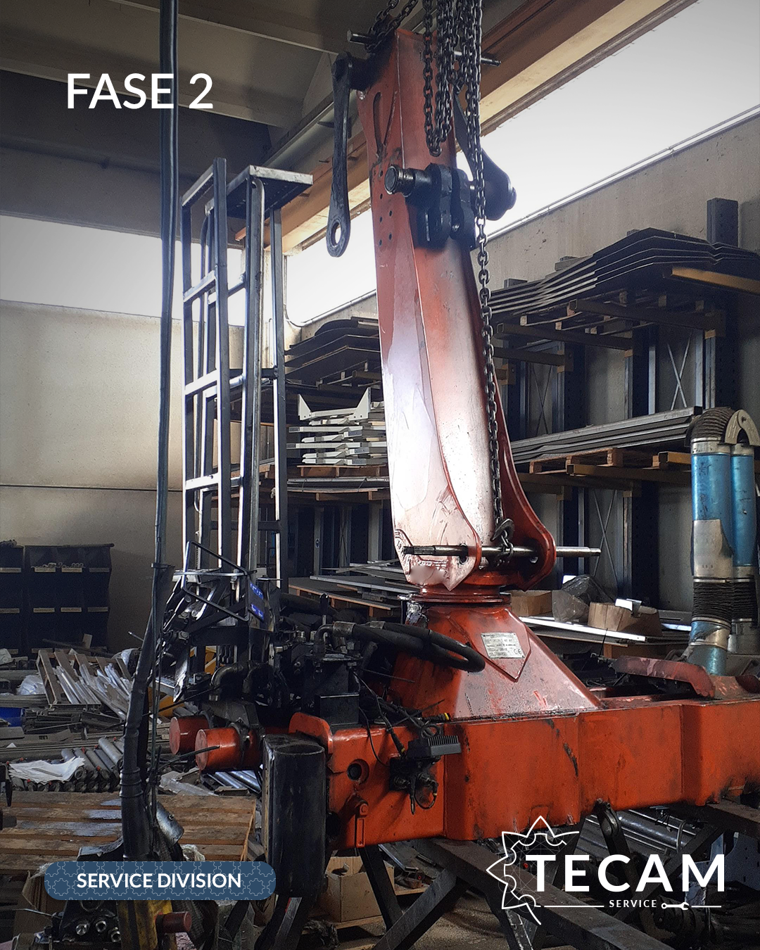 Dopo un’analisi completa da parte del team TECAM, l’intervento è iniziato con lo smontaggio integrale della gru dal telaio scarrabile.
