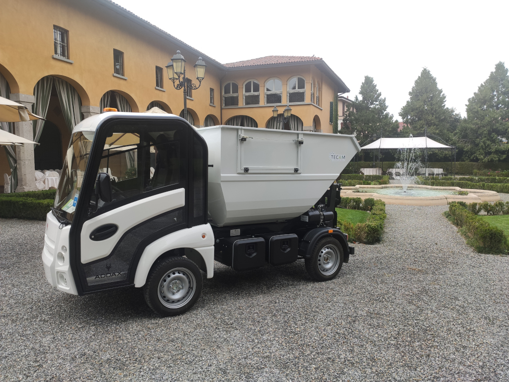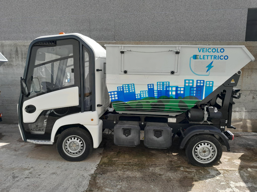 Veicolo ed attrezzatura totalmente elettrici, telaio ADDAX MT15N, attrezzatura vasca 2mc TECAM con sistema AVB, disponibile per vendita o noleggio, veicolo aziendale dimostrativo con pochissimi km