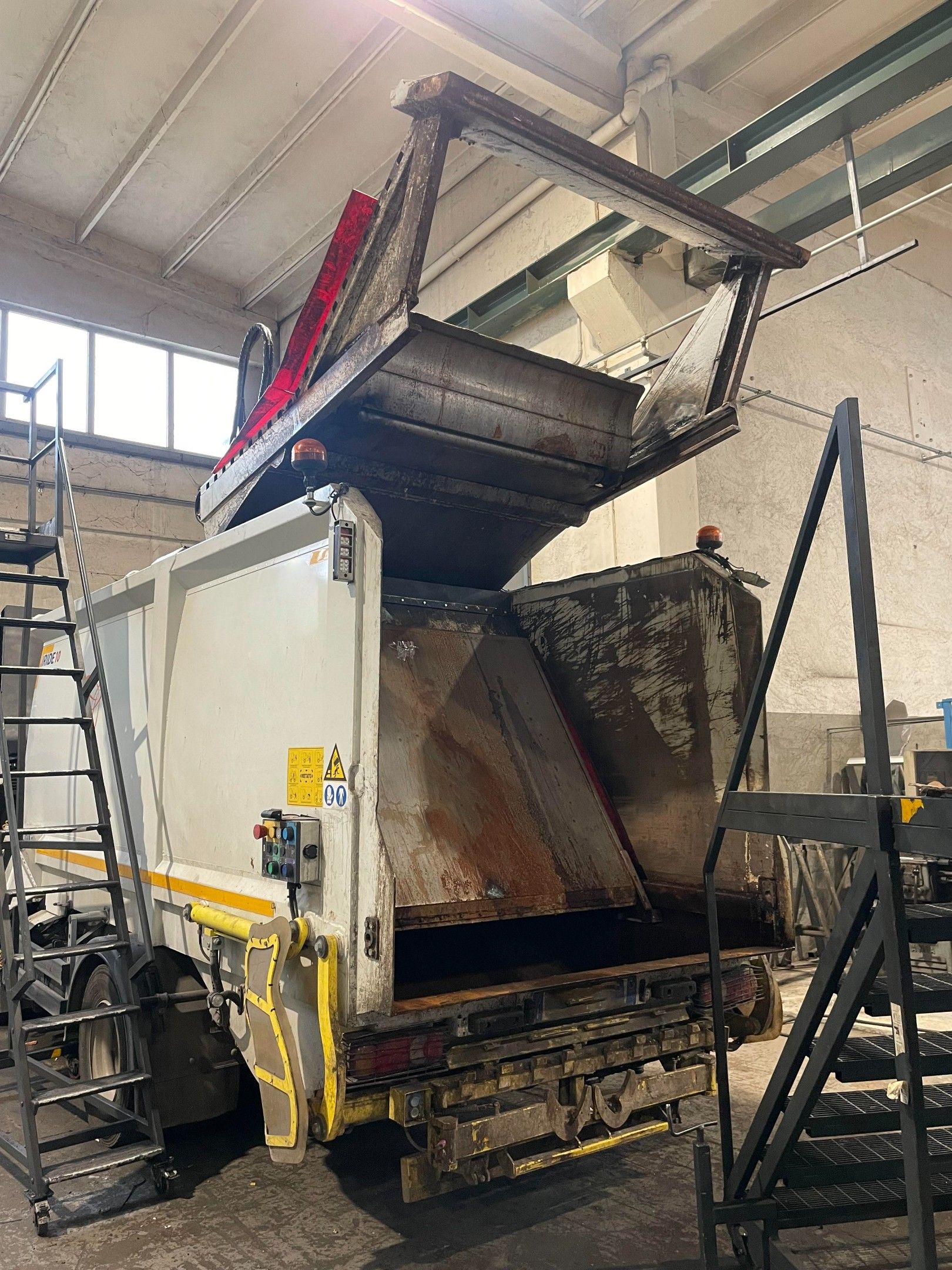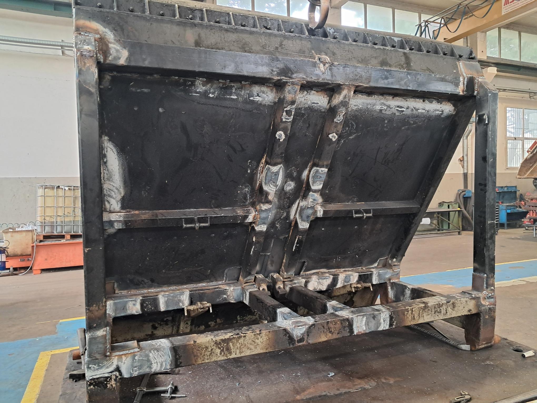 Un compattatore è arrivato nella nostra officina con il piatto di espulsione gravemente danneggiato. Le rotture estese e le deformazioni della carpenteria compromettevano il corretto funzionamento del sistema, rendendo impossibile il normale ciclo di raccolta e scarico dei rifiuti.